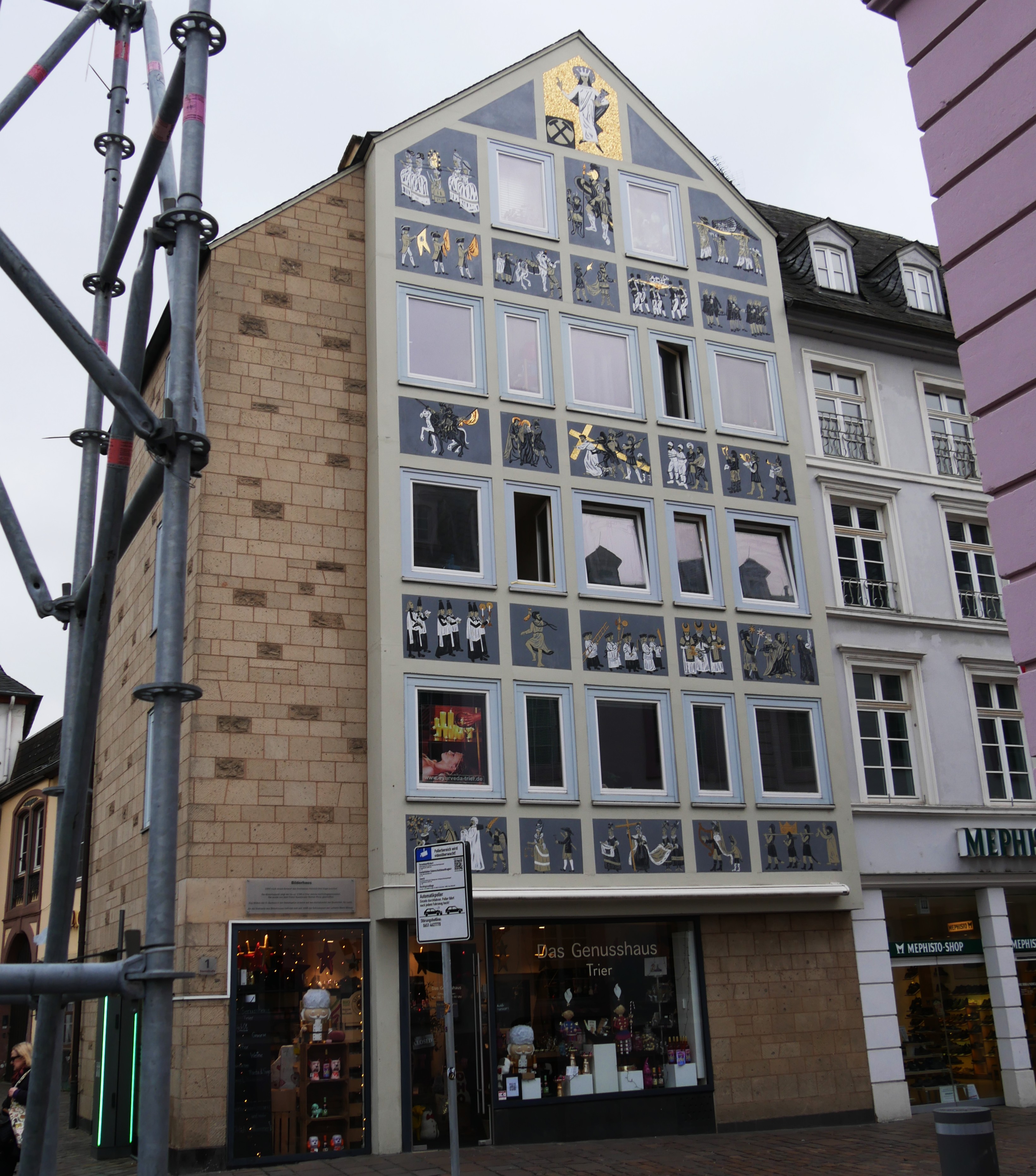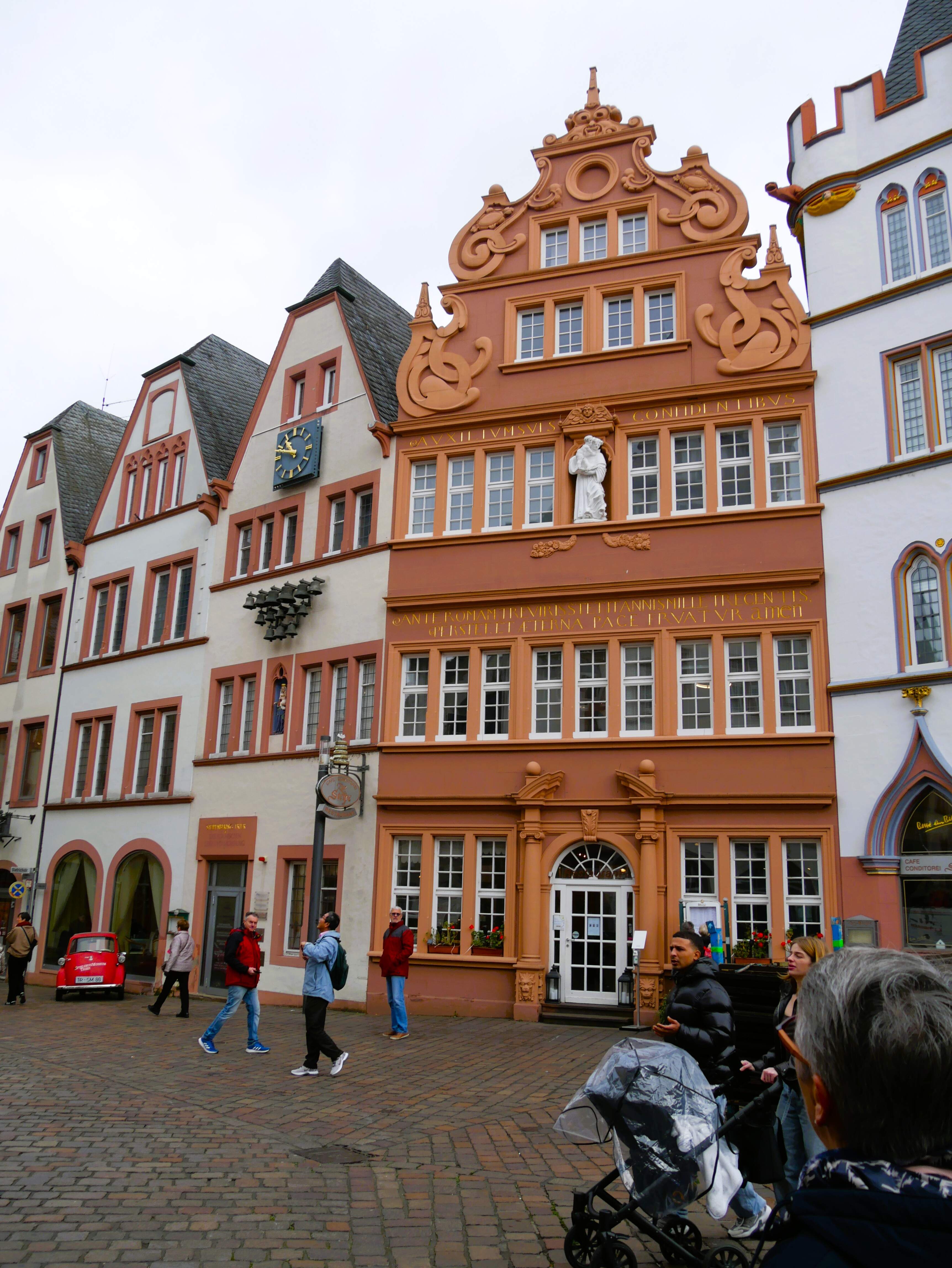 • Cliquez pour agrandir l'image 018-Sur la façade de la Maison Rouge , une inscription, Trèves vit le jour mille trois cents ans avant Rome.JPG