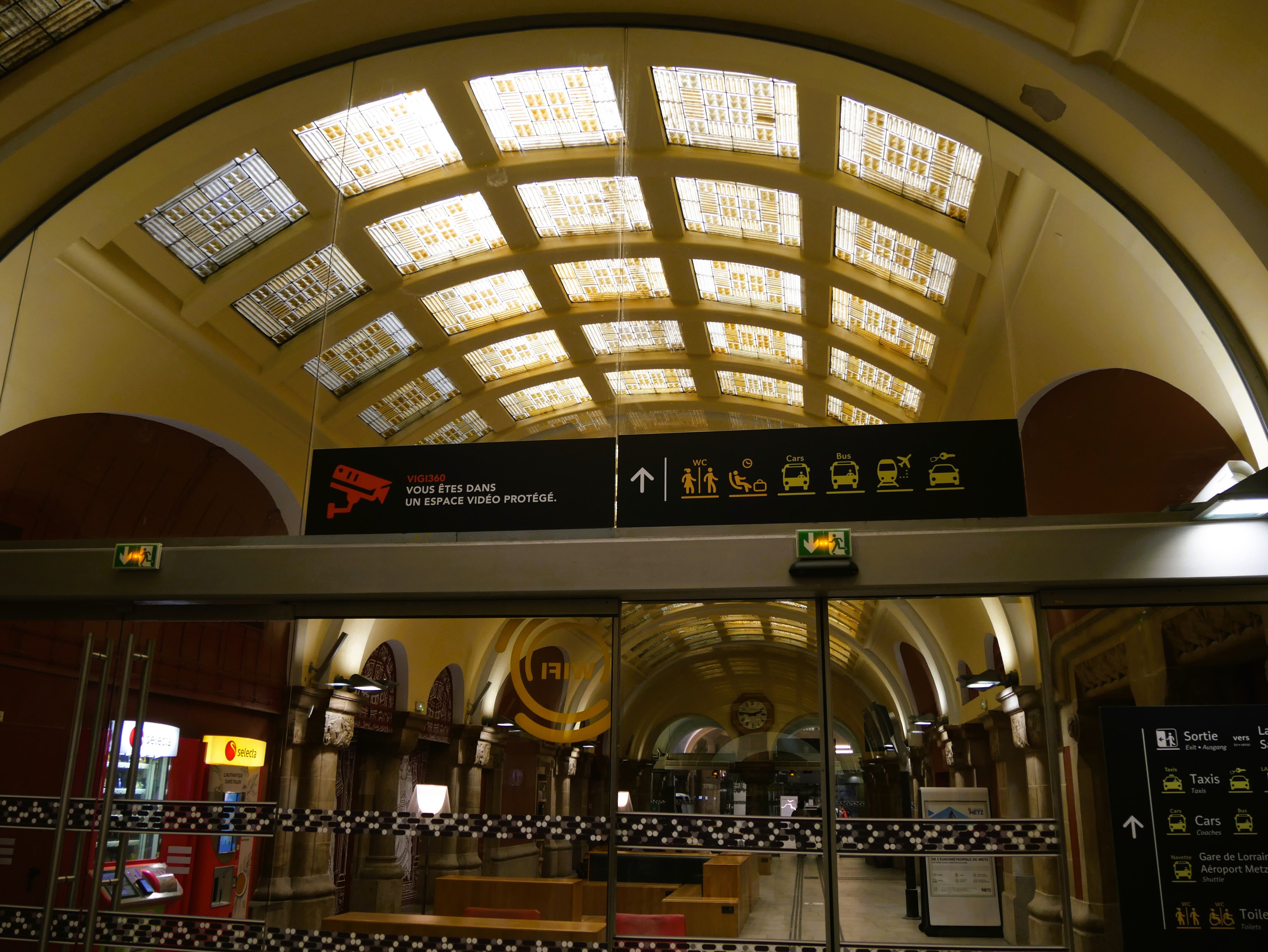• Cliquez pour agrandir l'image 060-Vitraux et dalles de verres colorés dans le hall d-arrivée.JPG