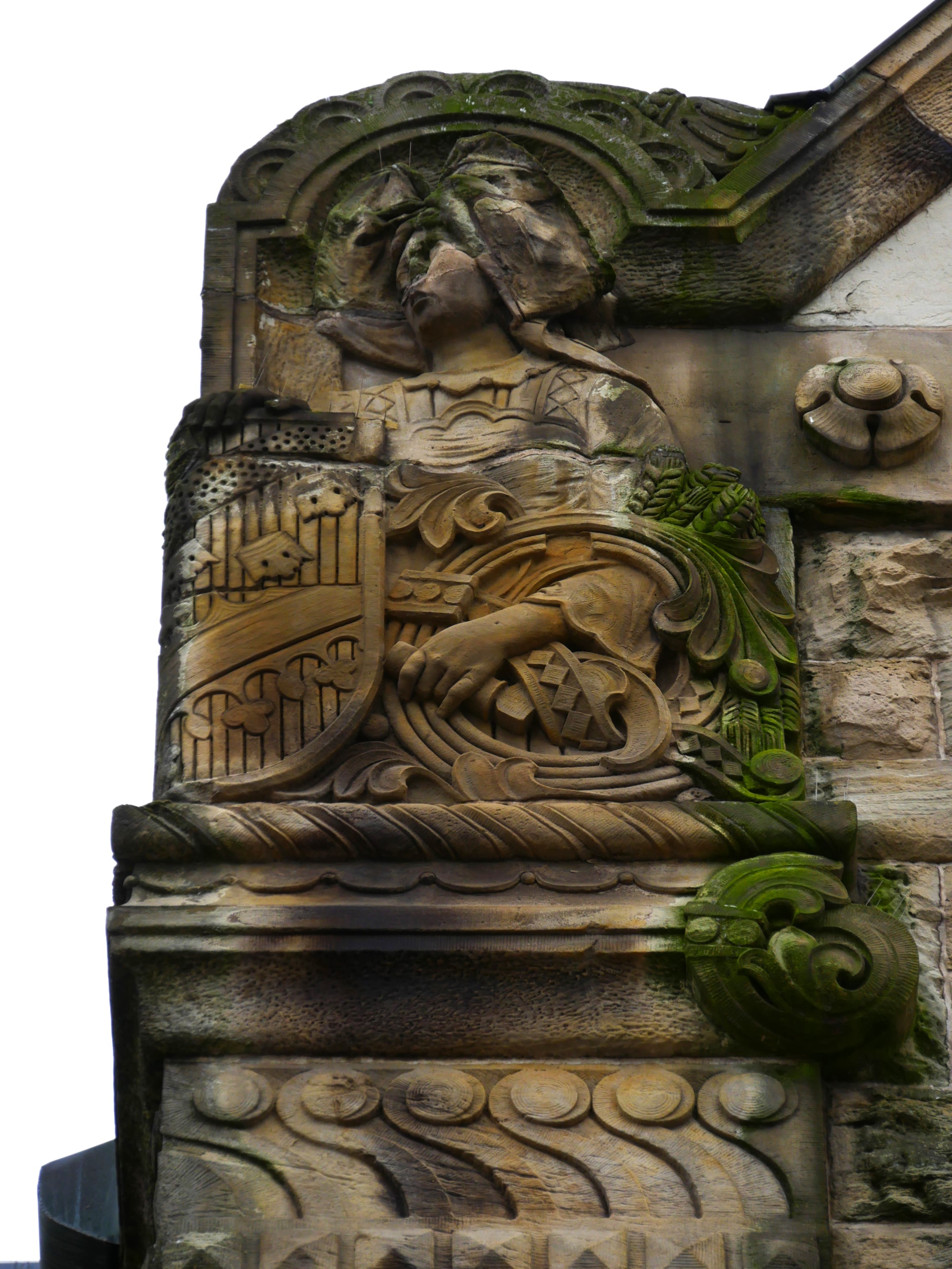 • Cliquez pour agrandir l'image 088-Un chevalier tient une épée et représente  la force armée. La dame avec son rouet est le symbole de l-industrie.JPG