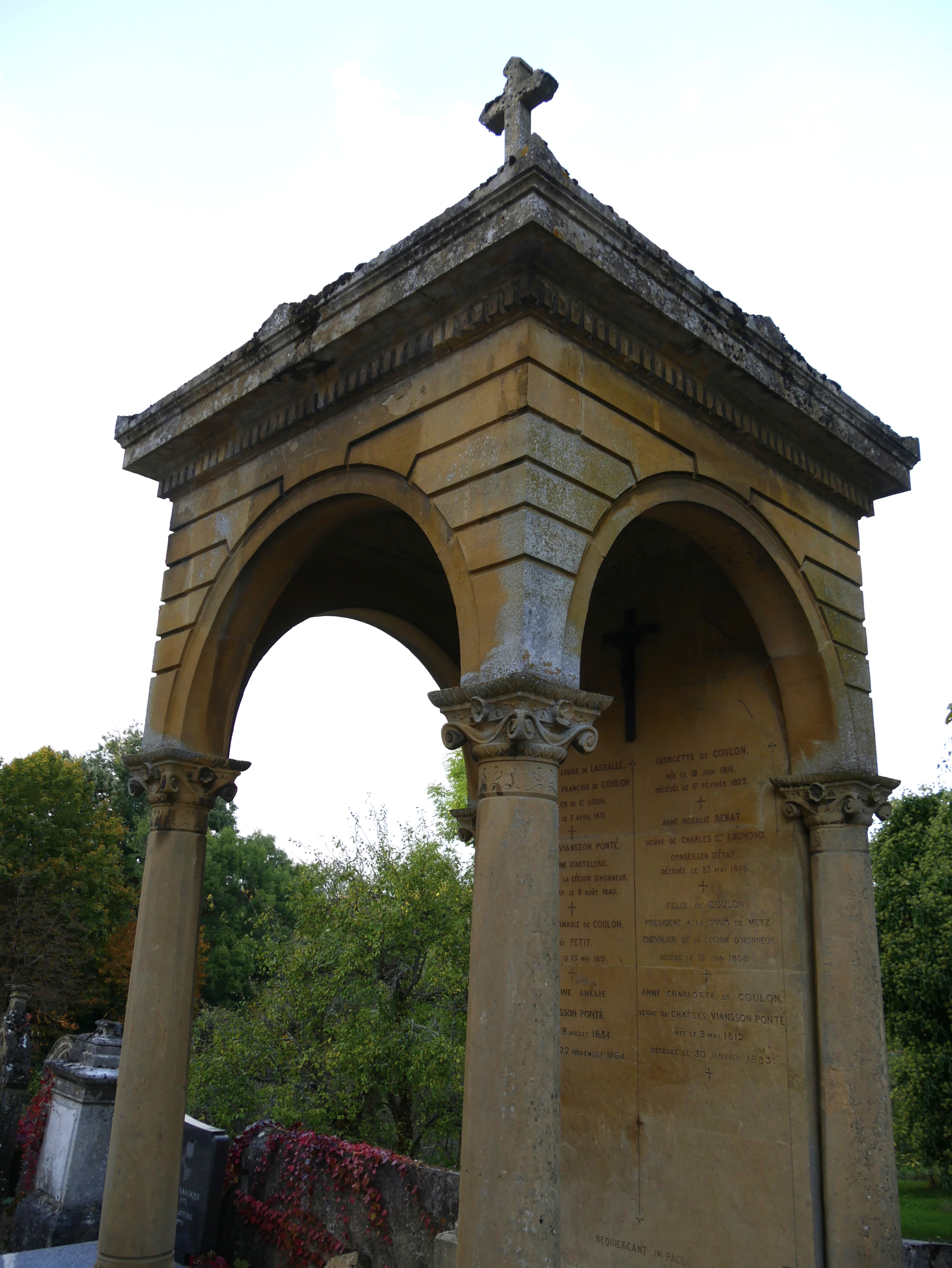 • Cliquez pour agrandir l'image 100-Le fronton avec une croix de Lorraine.Les sculpteurs sont des frères Pilz qui travaillaient à la cathédrale.JPG